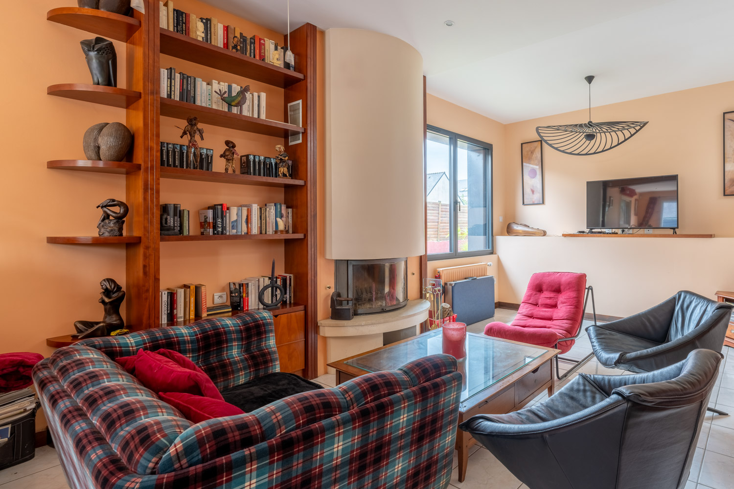 Maison des années 80 située dans un lotissement, non mitoyenne à l’architecture initiale singulière composée de 2 volumes asymétriques décalés et articulés autour d’un axe nord sud. Le volume principal était pourvu d’une verrière sur séjour aux rampants affleurant le sol côté rue avec un inconfort en hiver comme en été.